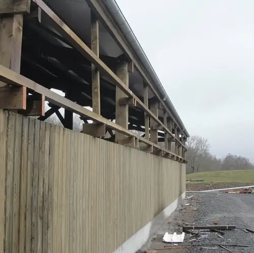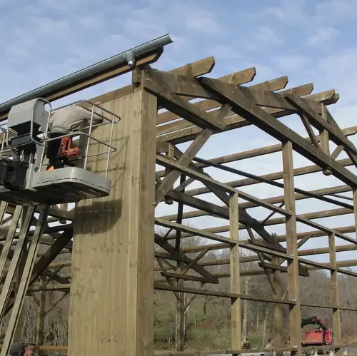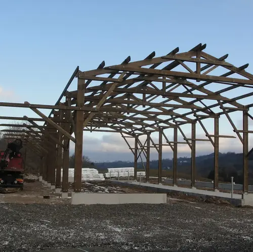 Suite à un incendie en 2018 d'une étable-grange dans un corps de ferme, l'architecte a été consulté pour la construction d'une stabulation. Les murs d'origine étant trop abîmés, il fût impossible de les conserver. Cependant le choix a été fait de privilégier une structure et un bardage en bois pour travailller l'intégration paysagère du nouveau bâtiment. Le projet a pour vocation d'accueil de vaches allaitantes qui s'organise autour d'une aire de couchage paillée et d'une aire d'exercice caillebotis. L'agence a accompagné agriculteurs et propriétaires dans la conception d'une stabulation adaptée aux besoins des exploitants. La mission s'est poursuivie jusqu'à la réception du projet avec le suivi des travaux. |