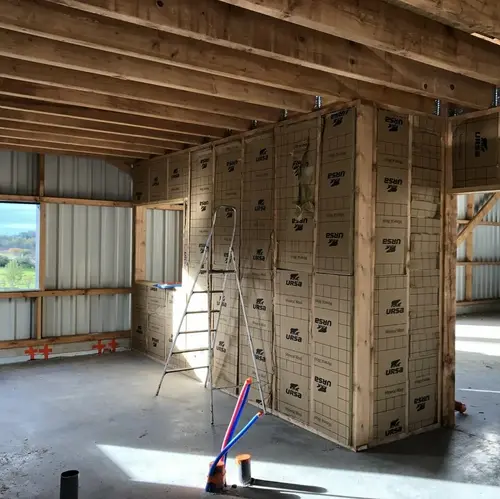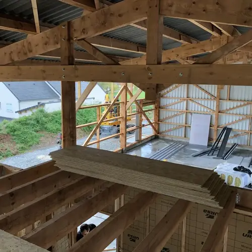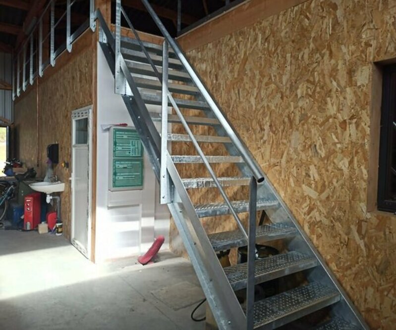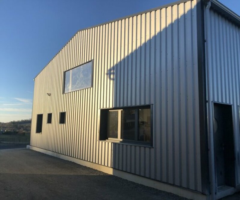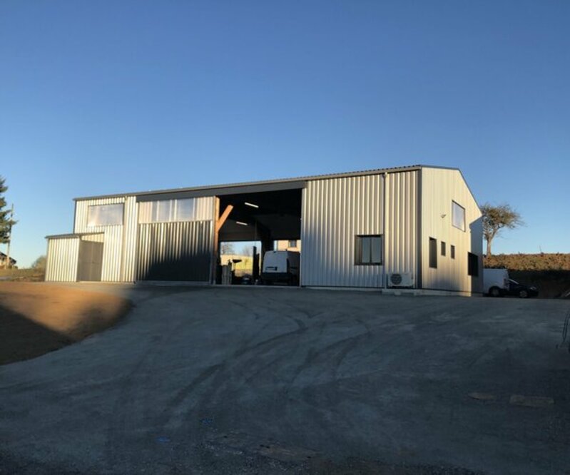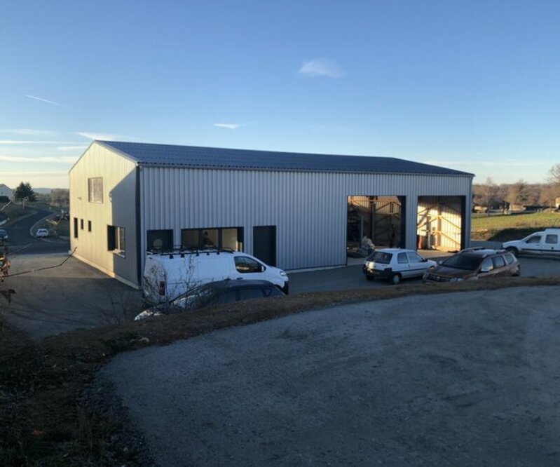 En chataigneraie cantalienne, un garagiste a consulté notre agence en 2021 pour être accompagné dans la conception et le suivi de son projet professionnel. Le bâtiment a d'abord été pensé avec une structure métallique. Mais les délais d'approvisionnement étant incertains durant la pandémie de COVID, l'architecte a proposé une structure bois. Le projet qui comprend une zone de travail, de stockage et des bureaux a été livré à temps pour l'emménagement du garagiste dans ses nouveaux locaux. |