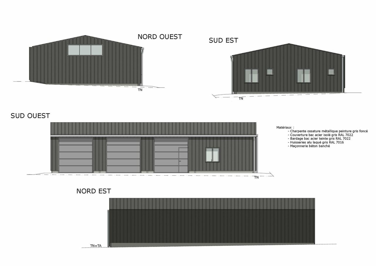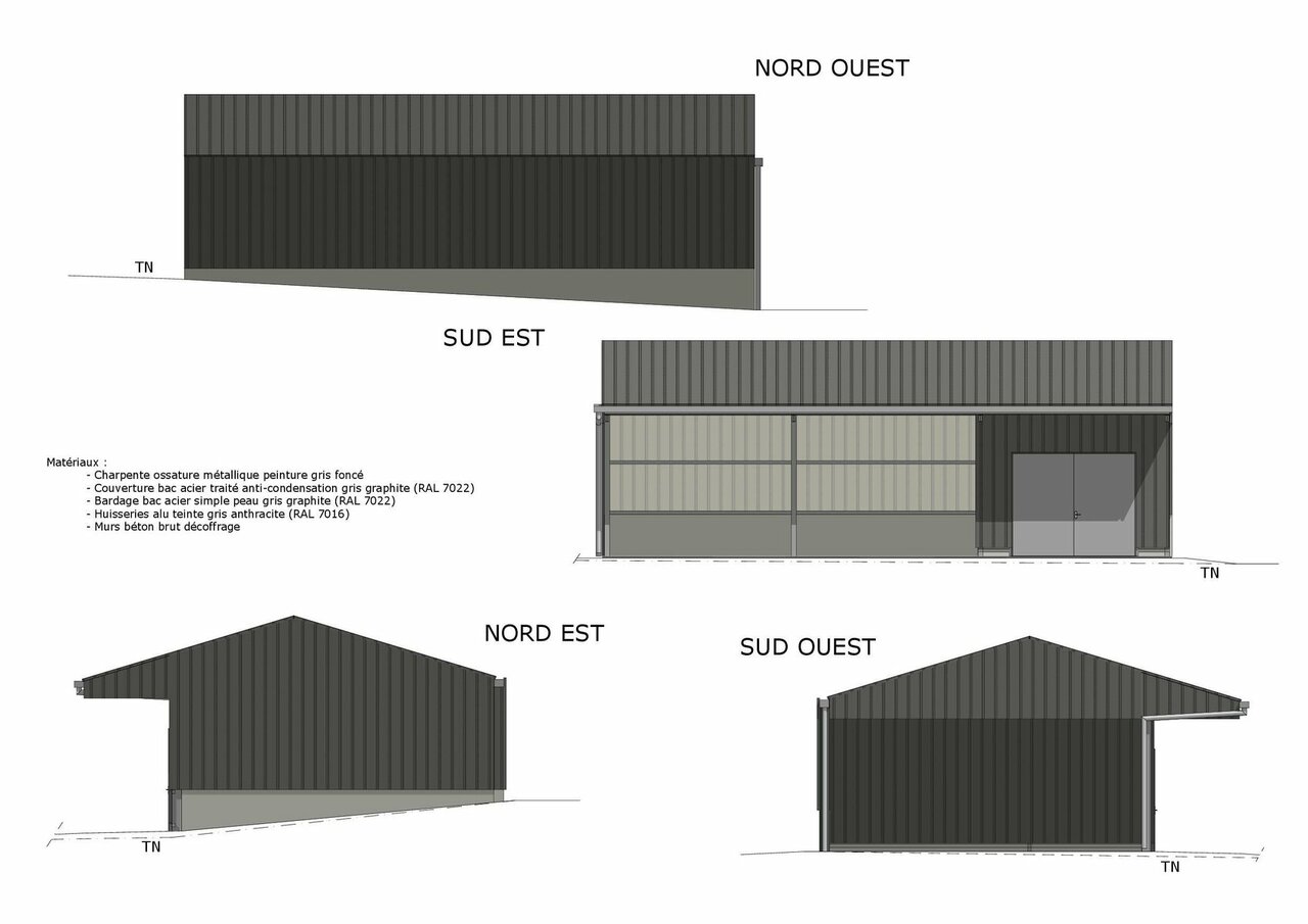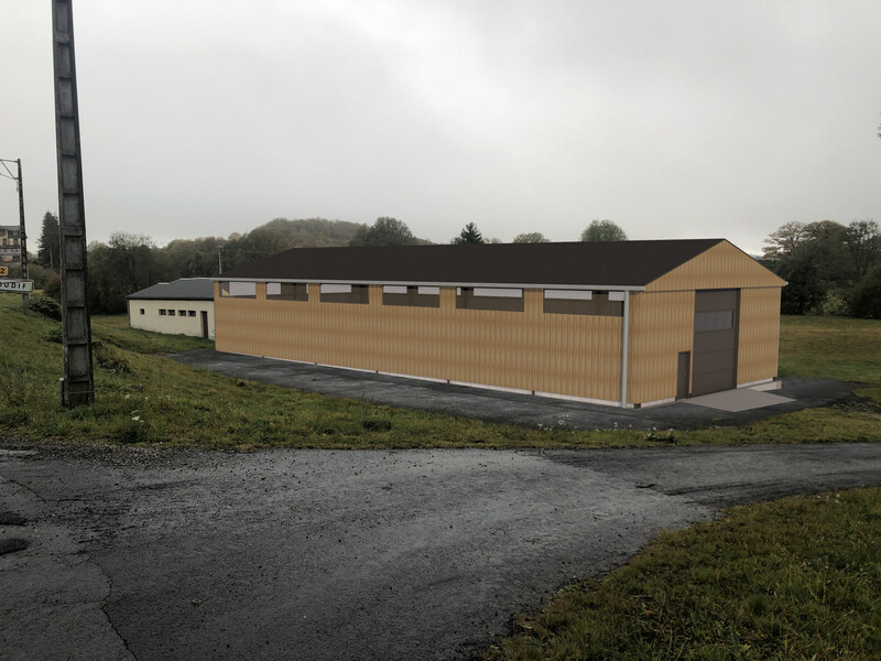 Conception d'un bâtiment ossature métallique avec bardage métallique imitation bois à usage d'entrepôt. |
