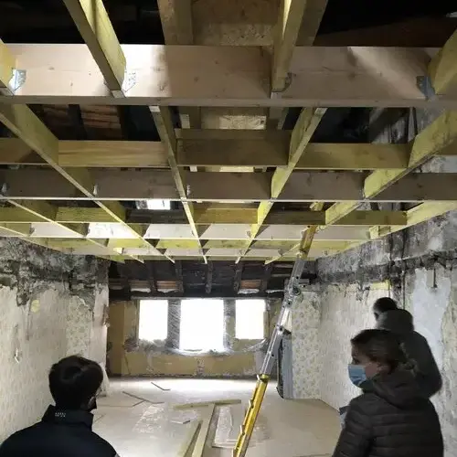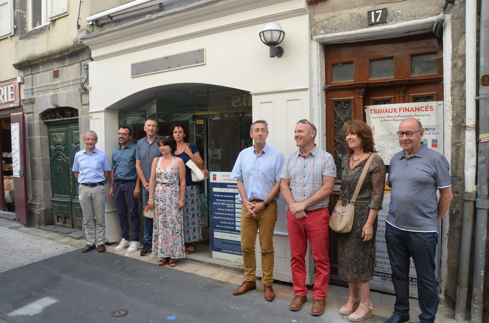 L'immeuble est composé de 3 logements et d'un commerce en rez-de-chaussée. Soucieux du devenir des zones inhabitées du centre ville aurillacois, notre client et sa épouse ont acheté l'ensemble pour le rénover. Les travaux ont débuté en Octobre 2020. SOLIHA, Action Logement et la mairie d'Aurillac participent au financement du projet. Les appartements sont étroits et traversants : il a fallu tenir compte de cette contraite pour maximiser l'apport de lumière naturel dans les pièces de vie et chambres. Les Architectes des Bâtiments de France ont été consultés pour le changement des huisseries côté rue. Elles seront remplacées par des fenêtres du même style pour respecter l'harmonie bâtie du centre ville. La rénovation des logements s'est achevée en Juin 2022. L'immeuble poursuivra sa cure de jouvance avec la réfection du magasin au rez-de-chaussée à la rentrée. La maitrise d'ouvrage a pu partager son parcours en tant qu'investisseur privé dans la rénovation de logements à vocation sociale lors d'une visite de projet. M. le Maire, ses adjoints, la directrice de l'ANAH, le président d'Action Logement, une représentante de Soliha et les financeurs ont fait le déplacement. L'occasion pour tous d'échanger autour de la problématique du logement en coeur de ville et de la rénovation du patrimoine aurillacois.