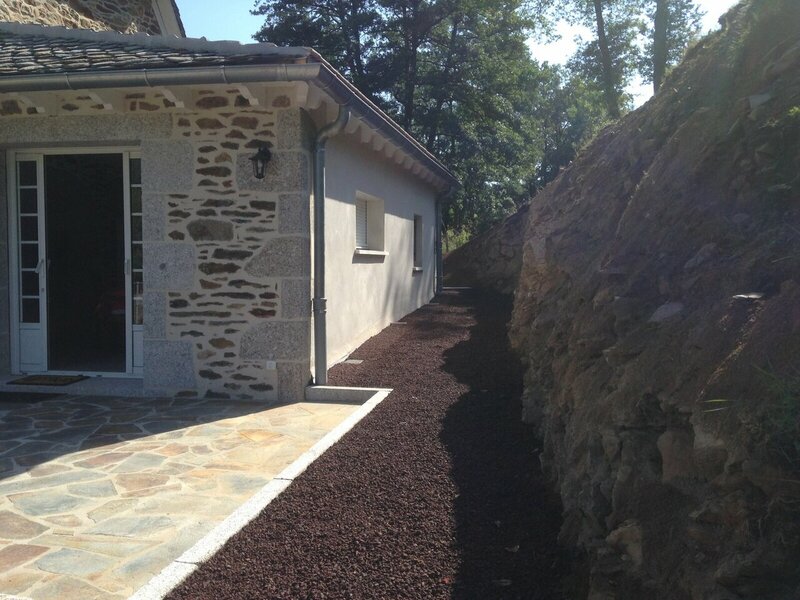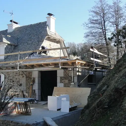 Au cœur de la Châtaigneraie Cantalienne, L. Sallard est intervenu pour agrandir le Moulin de Larrode. Une extension sur sa façade sud pour l’aménagement d’une pièce d’eau et d’une cuisine spacieuse donnant sur une terrasse ouverte sur l’entrée du domaine. Cette petite aile supplémentaire est construite en reprenant pour partie les matériaux présents sur le moulin : pierre pour les murs, lauze en couverture. Ce chantier a été suivi en mission complète par L. Sallard. Commencés le 20 décembre 2018, les travaux ont pris fin le 28 mai 2019, comme convenu et juste à temps pour la communion. Merci aux entreprises pour leur implication. |