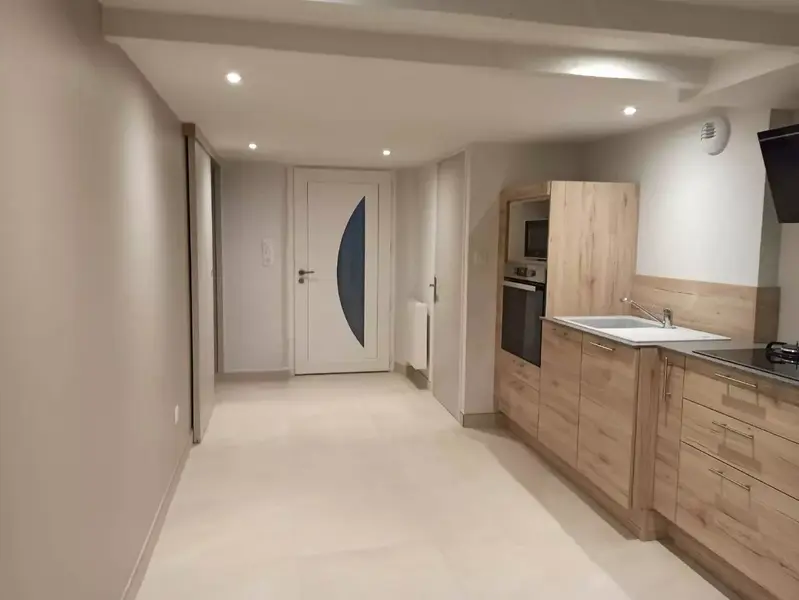 La maison insérée dans un alignement urbain a subi de très importants dégâts, nécessitant la réfection complète de l'intérieur et de la toiture. La rénovation a été totale dans un délai très contraint, le propriétaire âgé relogé par son assurance et souhaitant réintégrer au plus vite son logement. Les travaux ont commencé après l'intervention d'une équipe spécialisée dans le nettoyage de locaux incendiés. Après sécurisation de la structure de la maison voisine mitoyenne, la couverture et la charpente abimées ont été remplacées. Le cloisonnement et les usages au rez-de-chaussée ont été repensé dans le cadre du projet pour livrer une maison adaptée à la mobilité réduite de son occupant. |